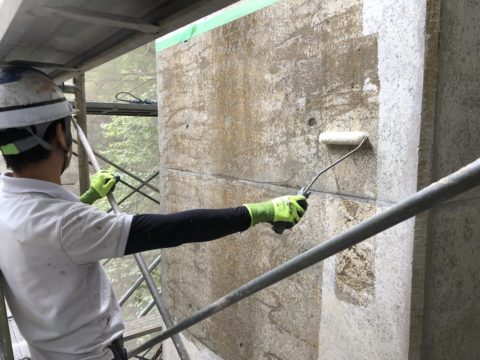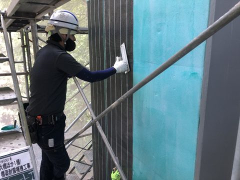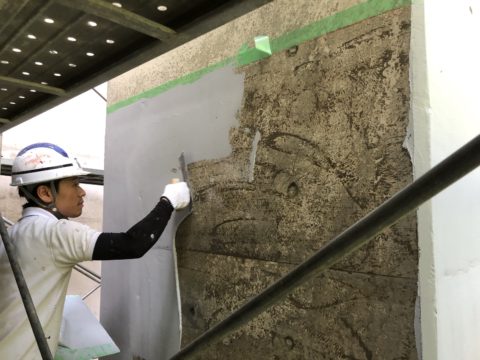 貼り付け後含浸材を塗布し、入念に脱泡を行います。