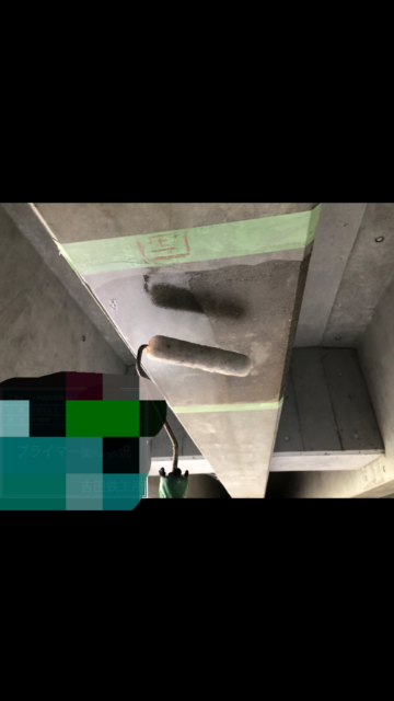 プライマーの乾燥確認後仕上げ材を規定膜厚を確認しながら塗布していきます。
