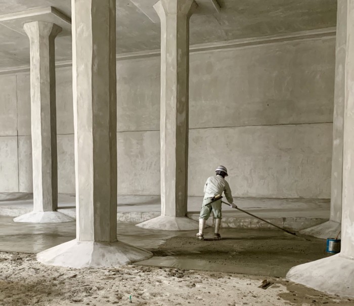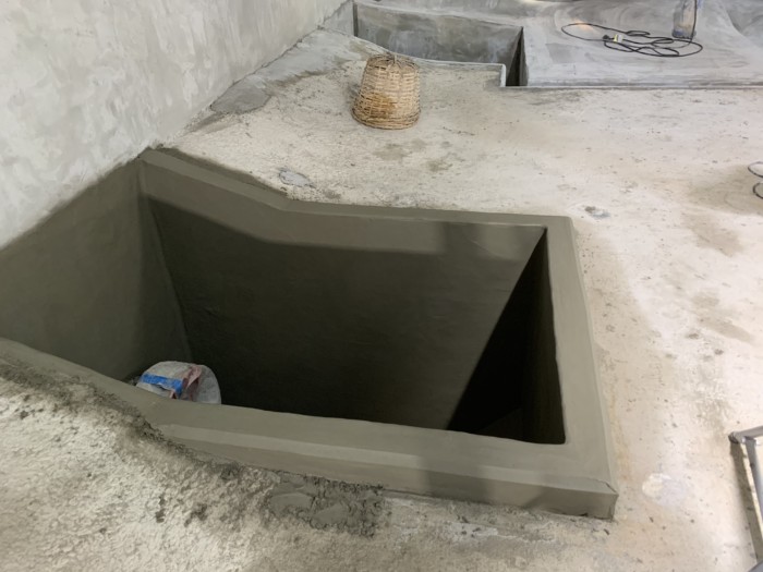 底盤のモルタル防水の施工を
